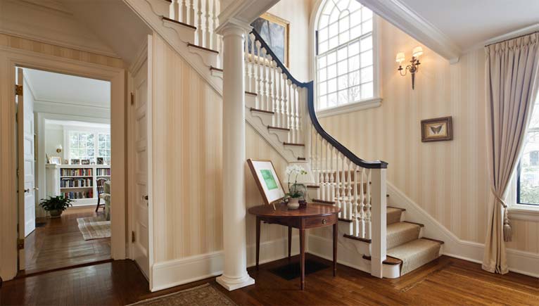 How do you make a home built for a different era work today? By careful consideration, creative problem solving, and meticulous detailing. ReConstructions Inc. added a three-car garage, a mudroom, an eat-in kitchen, and a spacious master bedroom suite. All this was accomplished without disturbing the elegance of the exterior design of the house, or the traditional interior floor plan. The result is a graceful traditional home that accommodates the needs of contemporary living.